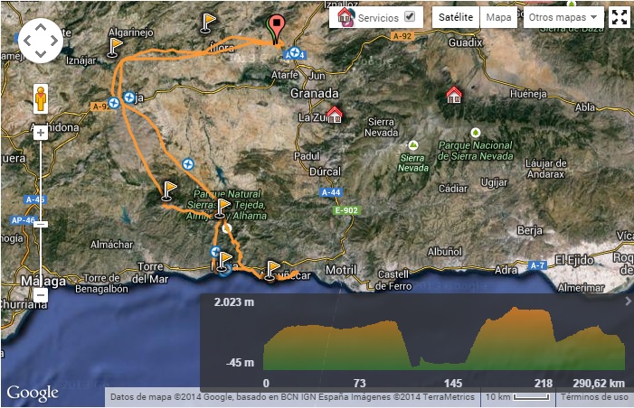 Las rutas se han realizado a partir de los siguientes lugares que he considerado más significativos para visitar en la provincia y siempre tomando como punto de origen el campo de vuelo de Aeroveleta: – Alhambra, Generalife y Sacromonte – Comarcas de las faldas del Parque Nacional de Sierra Nevada ( Altiplano, Alpujarras y Güejar Sierra) – Litoral costero – Sierras de Alhama, Tejeda y Almijara.